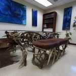 Our antler dining table is made from whitetail deer, moose, elk, and mule deer antlers.