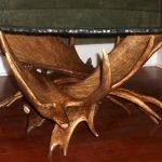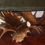A variation from the Delta table…. This circular table is filled out with four large moose antlers. Each antler is on display from every angle. No two antler tables are the same as no two moose antlers are the same. We handpick our antlers to fit each tables need.