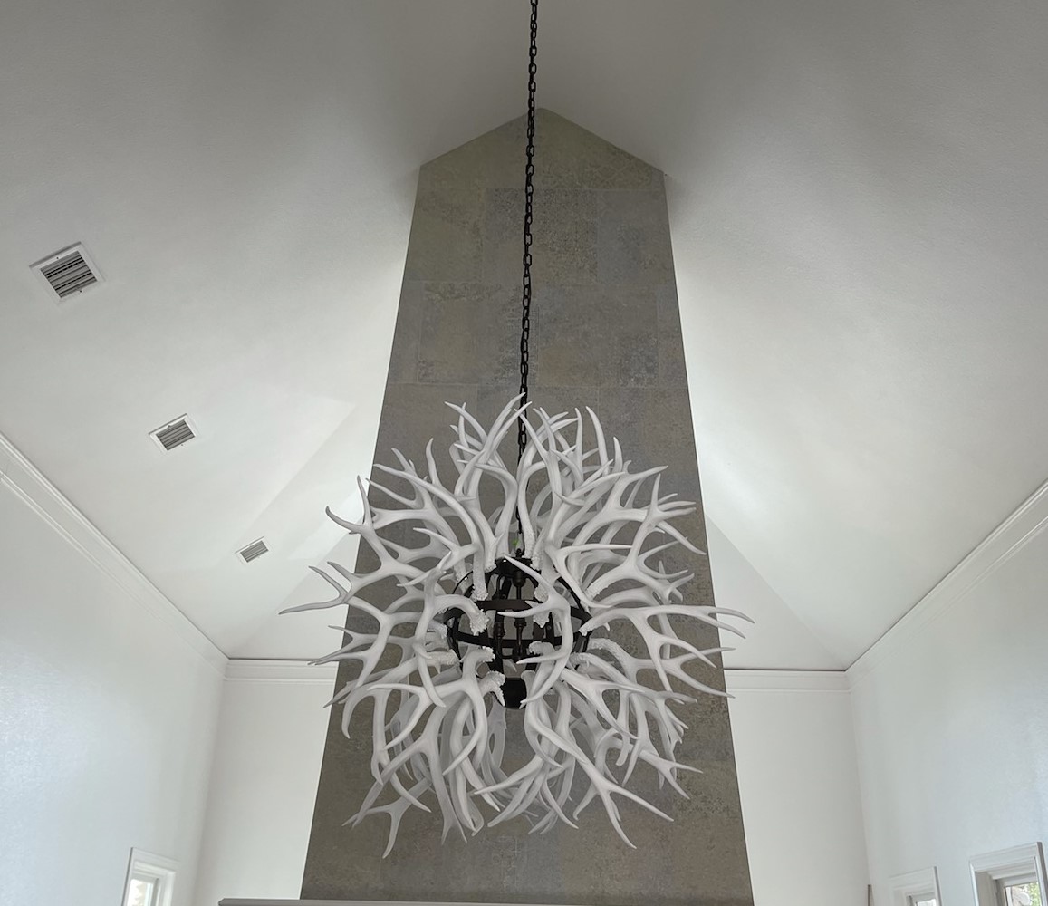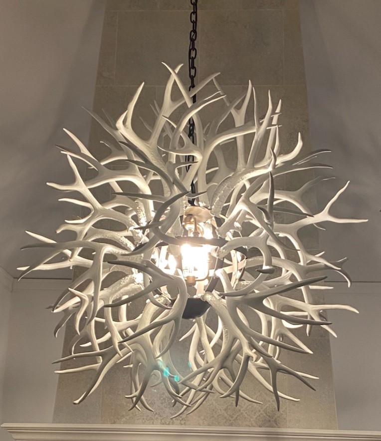 Available in 40″, 50″, and 60″ diameters, with 3 to 6 lights, this white mule deer antler ball chandelier blends Western charm with modern elegance—making it a standout piece that feels both wild and refined.